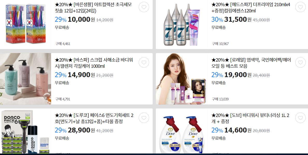 할인 품목 : 바디워시, 면도기 등