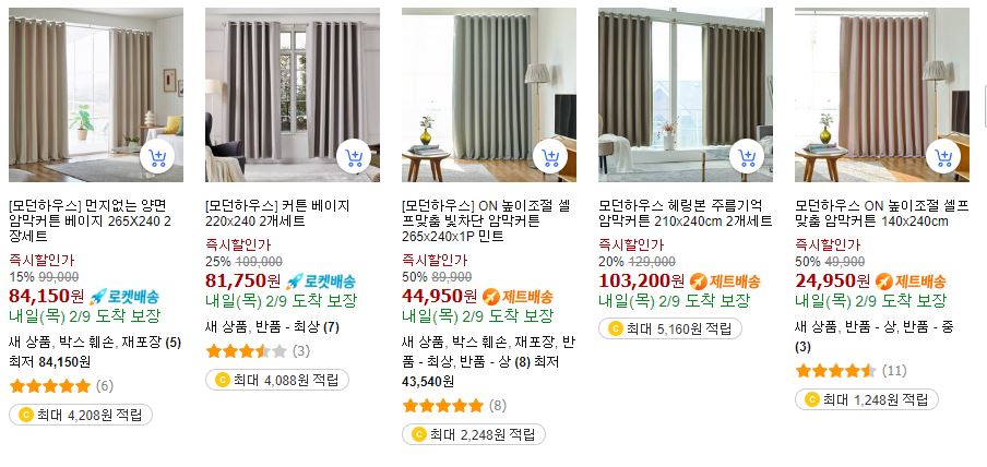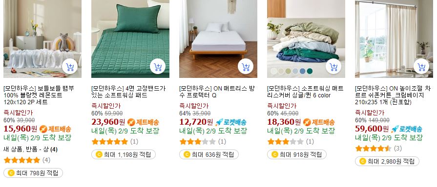 할인 품목 : 토퍼, 커튼, 접시, 의자 등