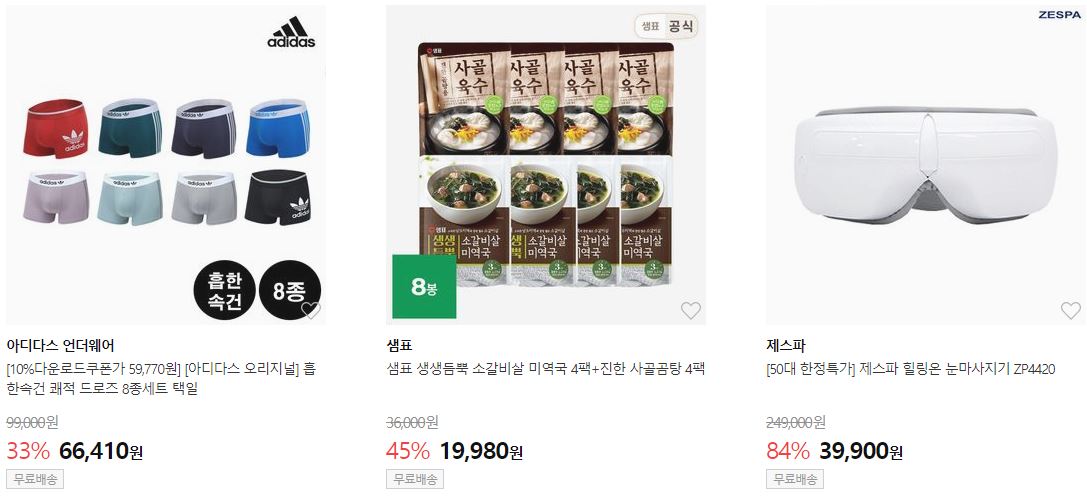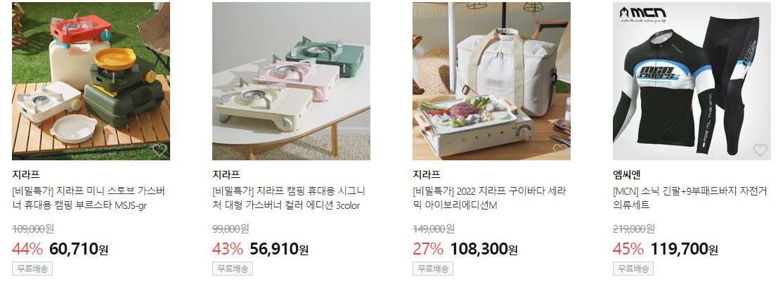 할인 품목 : 캠핑용품, 화장품, 속옷 등