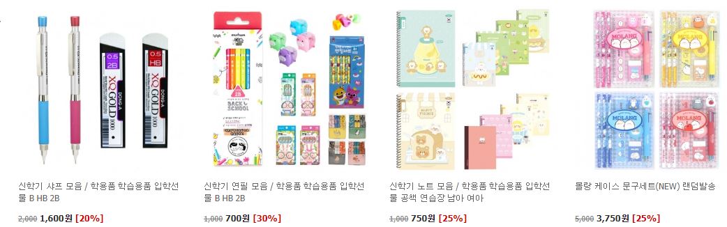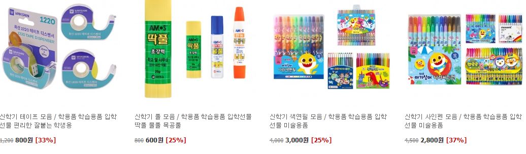 할인 품목 : 노트, 샤프, 테이프 등