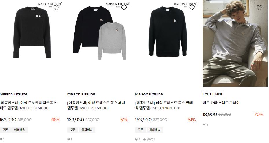 할인 품목 : 후드티, 맨투맨 등