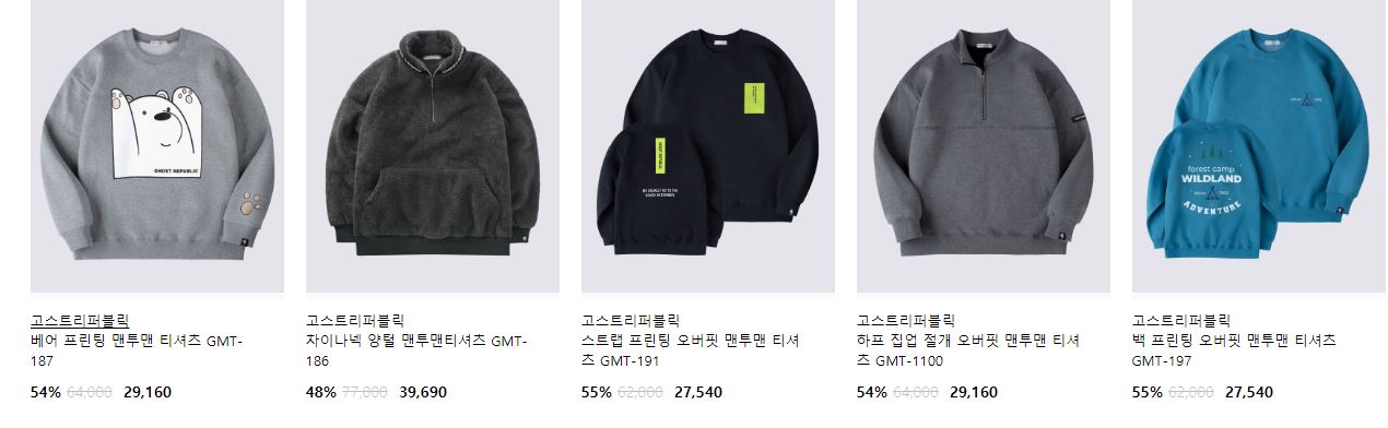 고스트 리퍼블릭 다양한 제품을 할인 판매하네요.