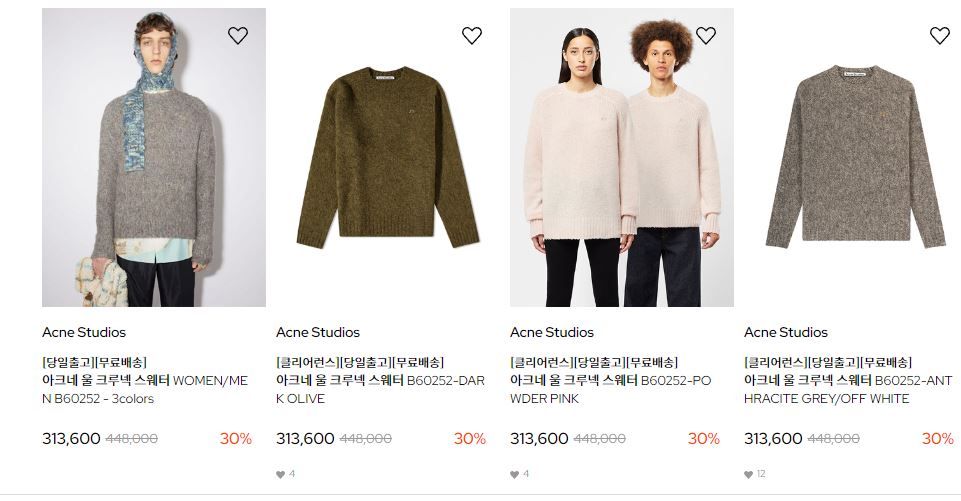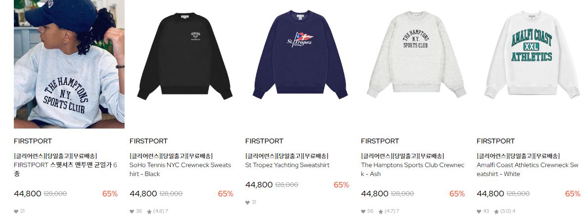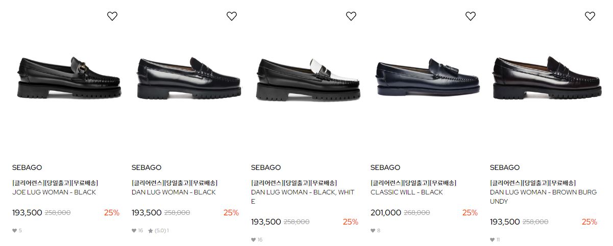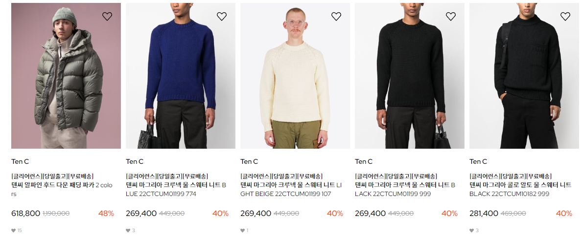할인 품목 : 니트, 티셔츠, 구두 등