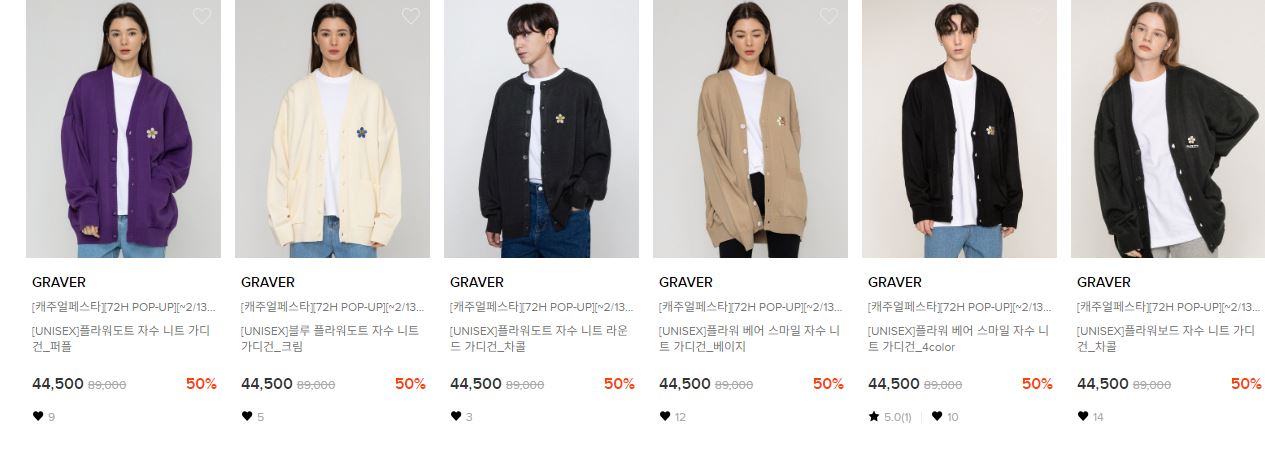 할인 품목 : 맨투맨, 가디건, 팬츠 등