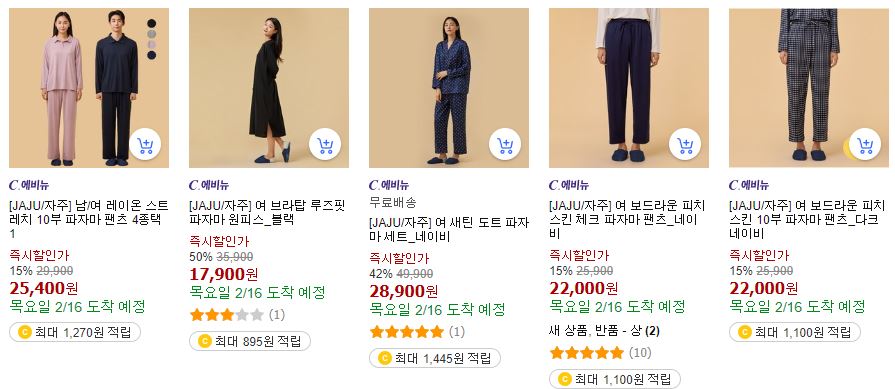 할인 품목 : 잠옷, 티셔츠 등