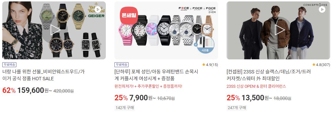 할인 품목 : 의류, 시계, 신발 등