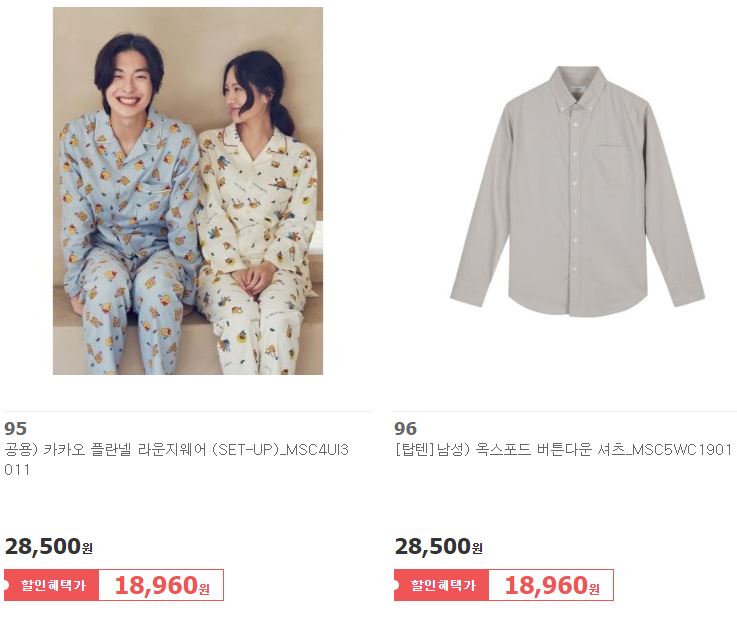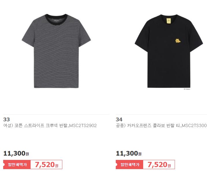 할인 품목 : 티셔츠, 팬츠, 자켓 등