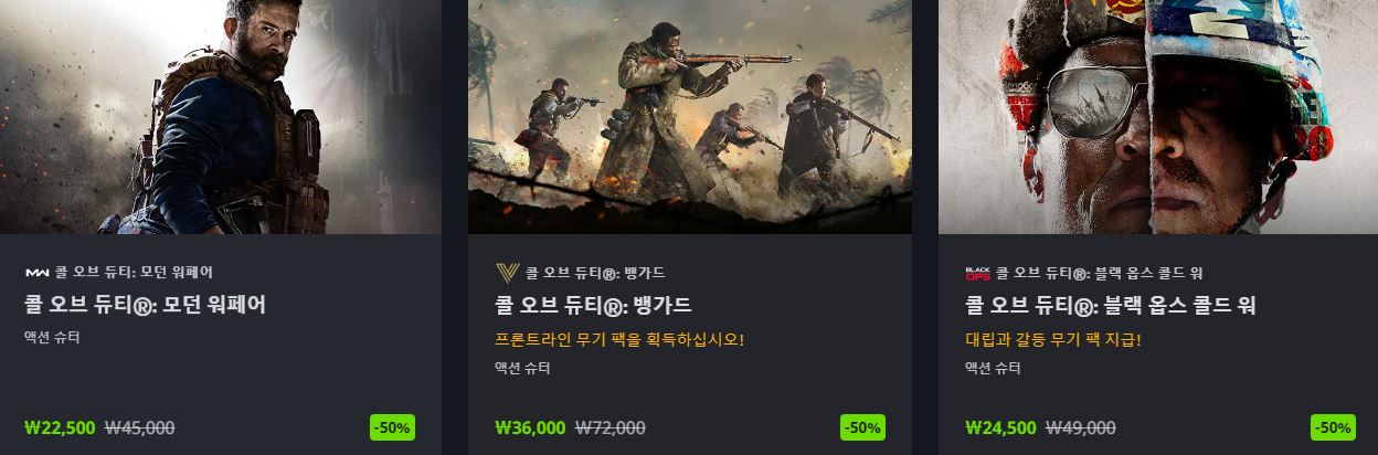 할인 품목 : 디아블로2 레저렉션, 콜오브듀티 등