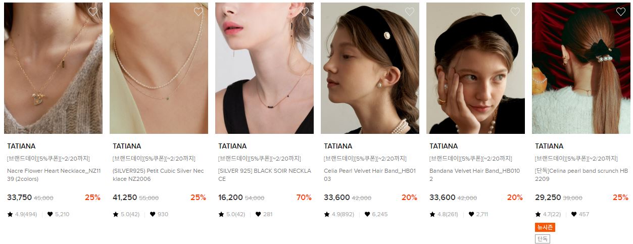 할인 품목 : 귀걸이, 목걸이, 헤어밴드 등