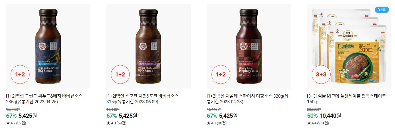 할인 품목 : 함박스테이크, 소시지, 햇반 등