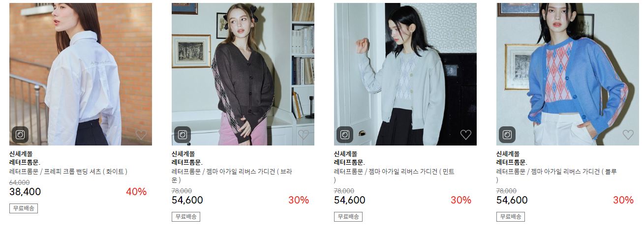 할인 품목 : 자켓, 셔츠, 니트 등