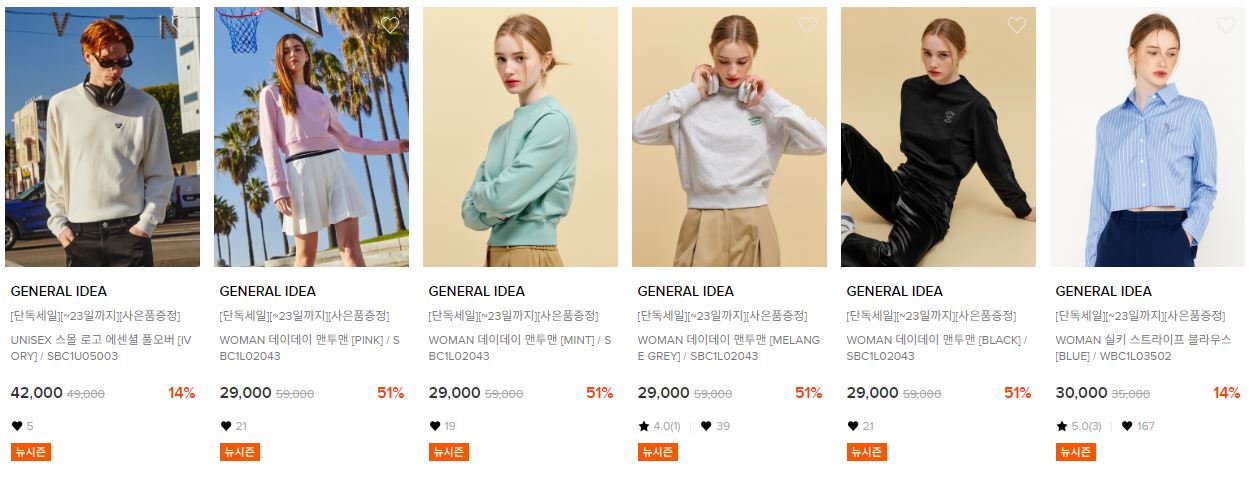 제너럴아이디어 최대 56% 세일 정보 [링크]