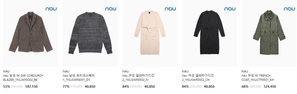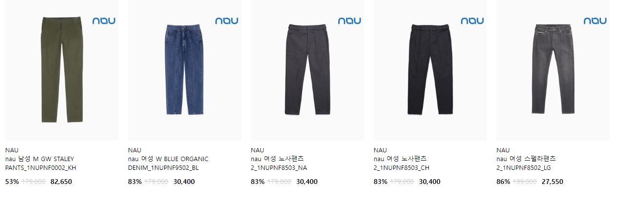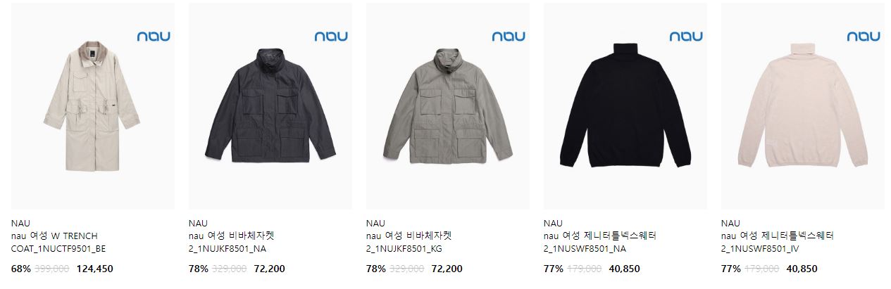 NAU 다양한 제품을 할인 판매하네요.