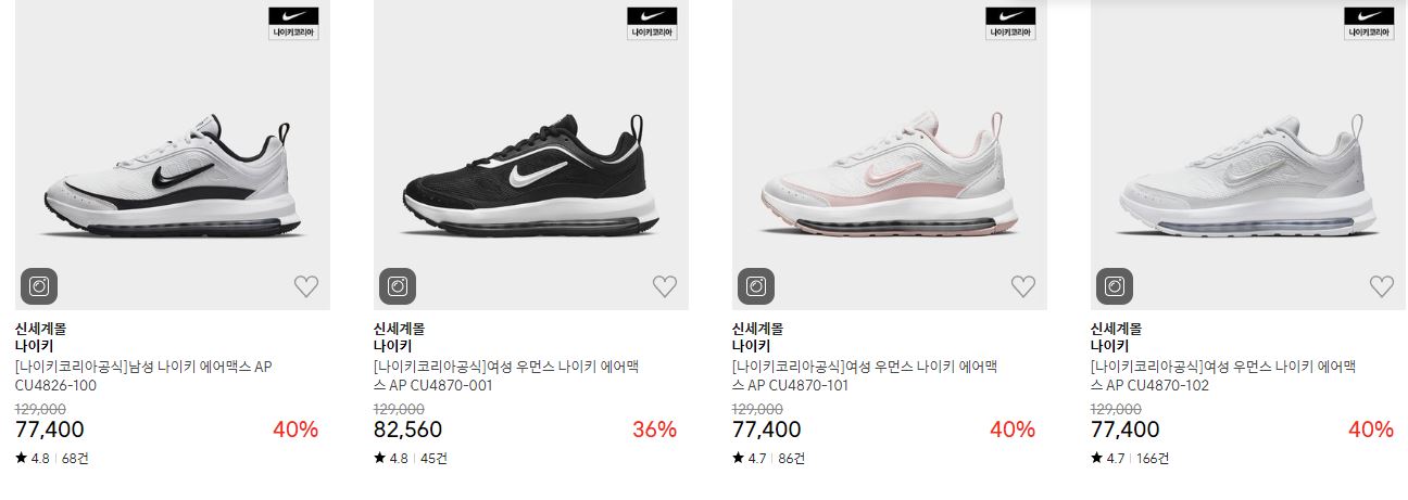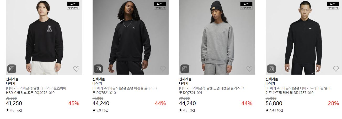 나이키 다양한 제품을 할인 판매하네요.