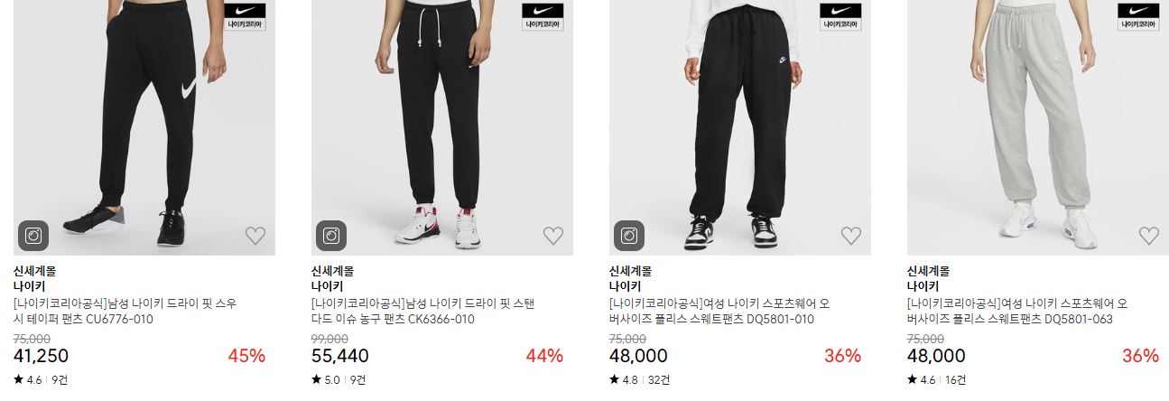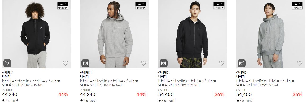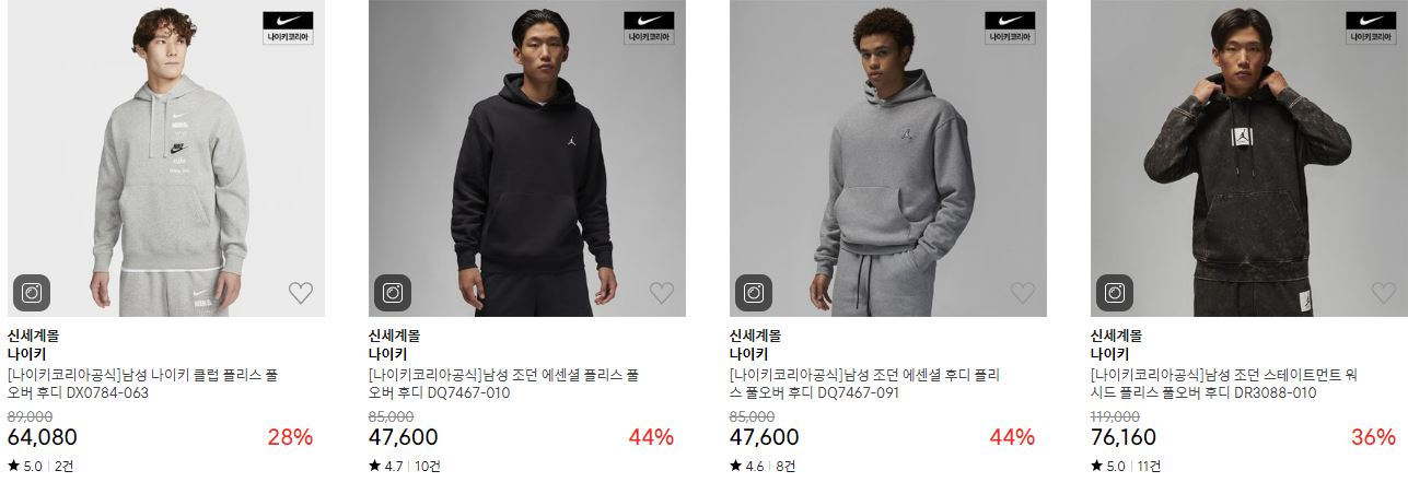 할인 품목 : 운동화, 후드티, 팬츠 등