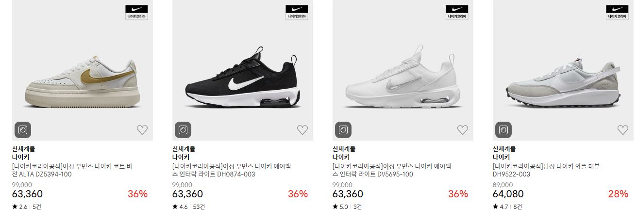 나이키 다양한 제품을 할인 판매하네요.
