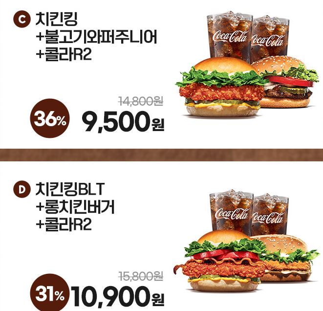 할인 메뉴 : 치즈와퍼주니어, 치킨킹 등