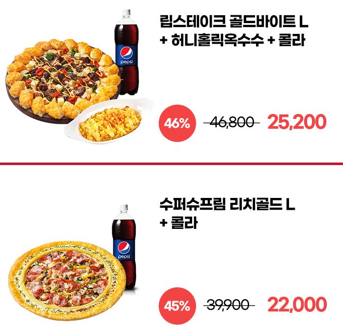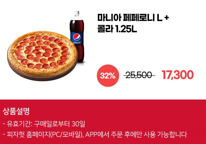 피자헛 다양한 메뉴를 할인 판매하네요.