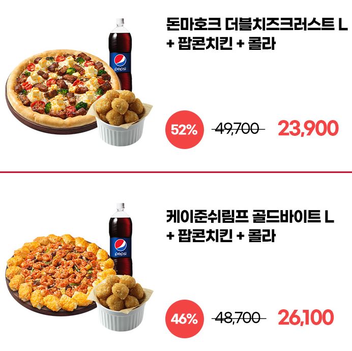 할인 메뉴 : 돈마호크 더블치즈크러스트 등