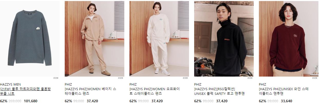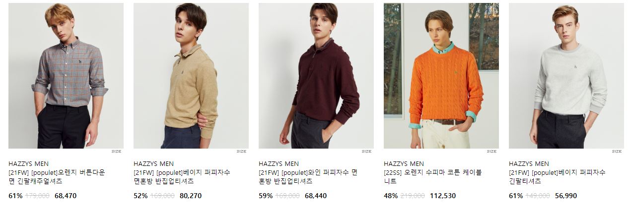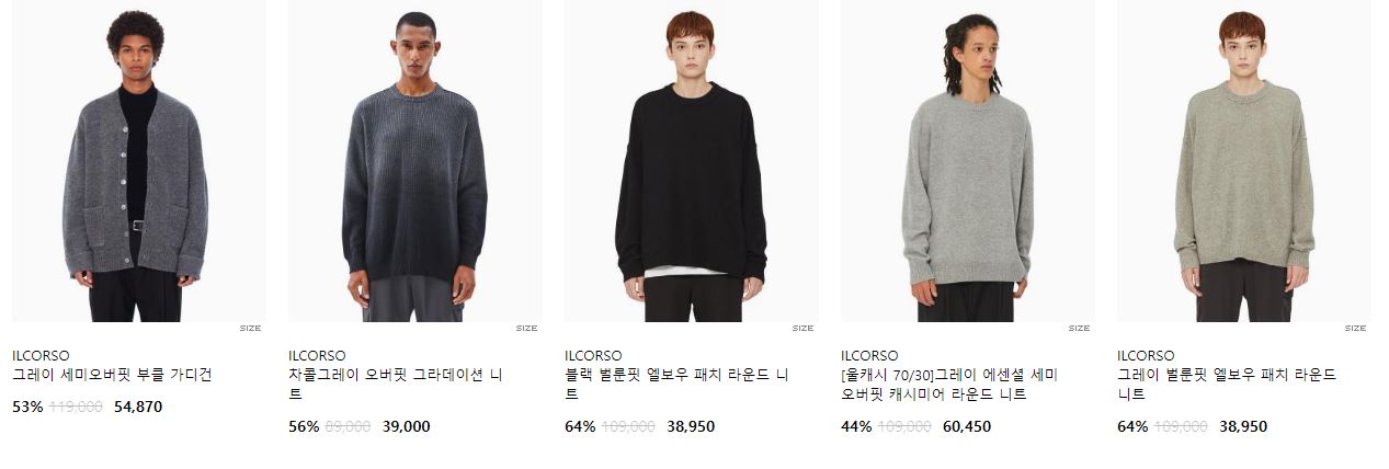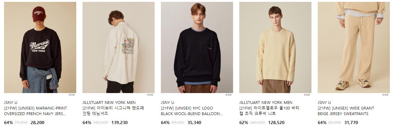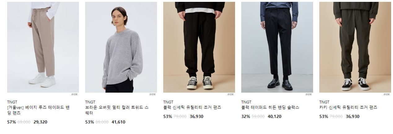 할인 품목 : 티셔츠, 니트, 팬츠 등