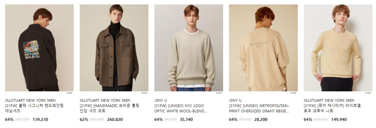 할인 품목 : 티셔츠, 니트, 팬츠 등