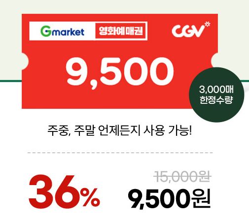 CGV 영화예매권 36% 할인 정보 포스팅입니다.