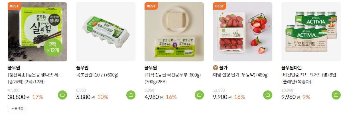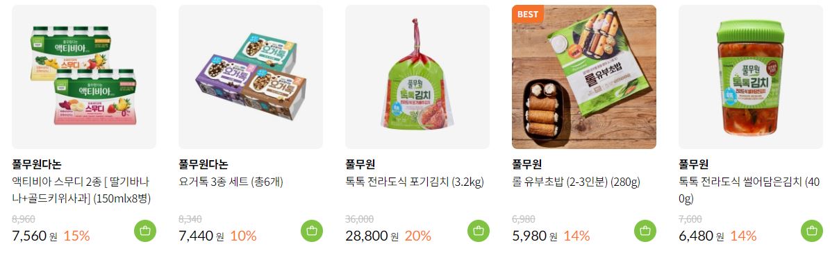 풀무원 다양한 제품을 할인 판매하네요.