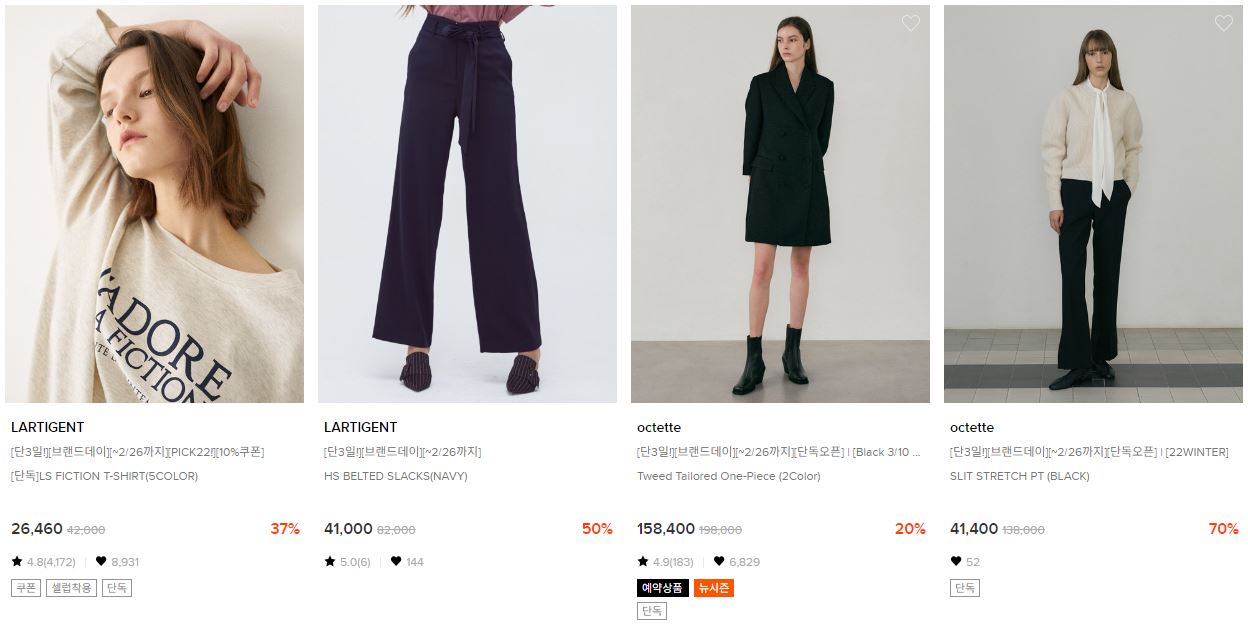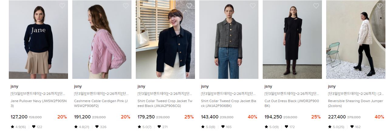 할인 품목 : 자켓, 셔츠, 팬츠 등