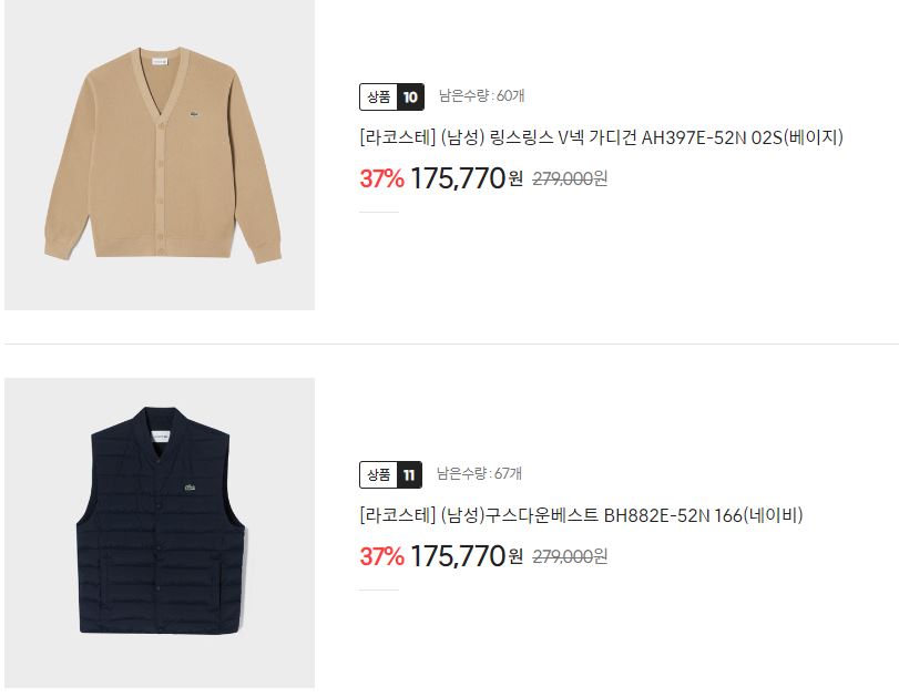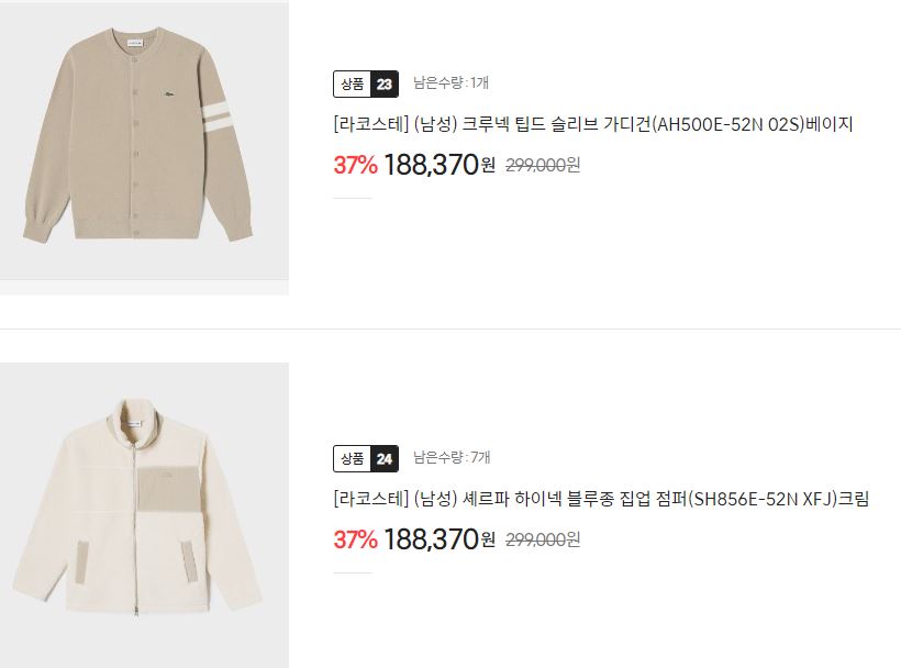 라코스테 37% 세일 정보 [링크]