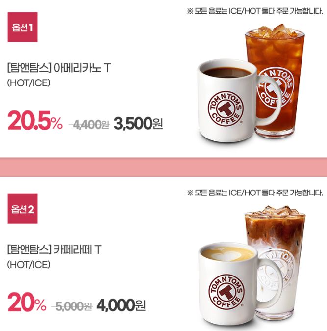탐앤탐스 top3 한정수량 20% 할인 정보 포스팅입니다.