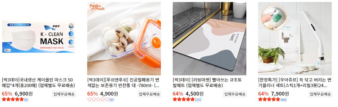 할인 품목 : 세제, 마스크, 정리함 등