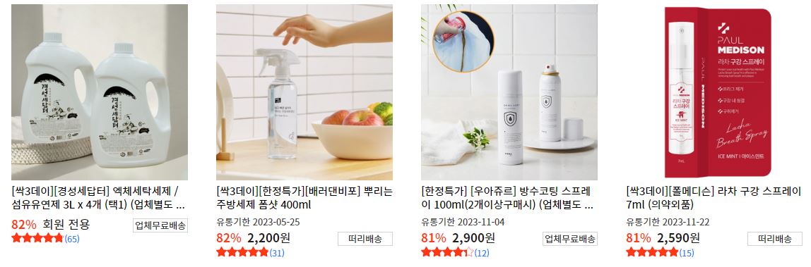 할인 품목 : 세제, 마스크, 정리함 등