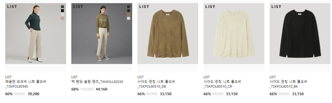 할인 품목 : 티셔츠, 니트, 가디건 등