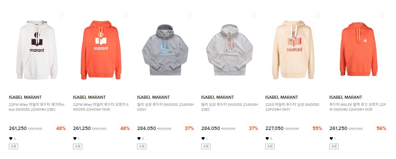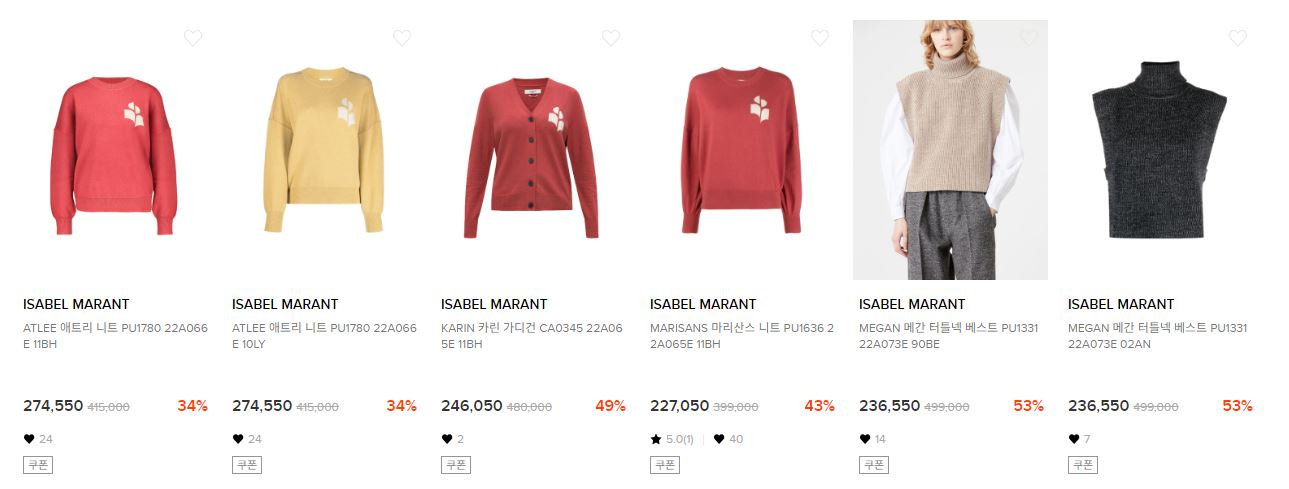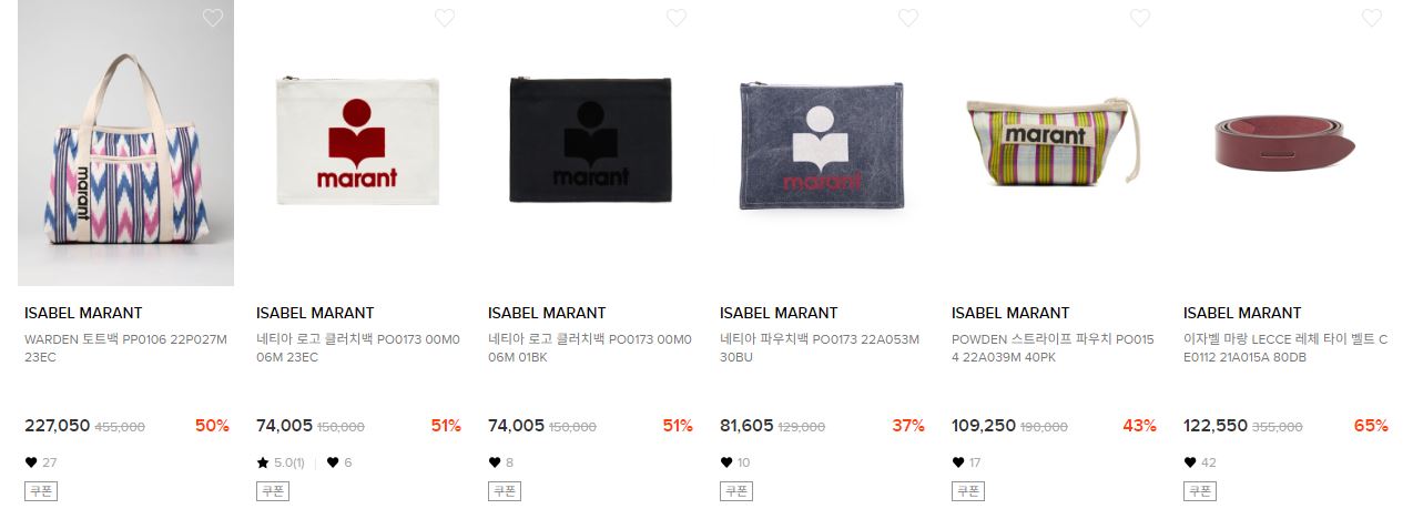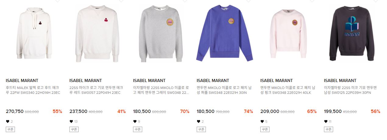 이자벨마랑 다양한 제품을 할인 판매하네요.