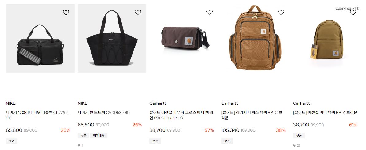 할인 품목 : 운동화, 의류, 가방 등