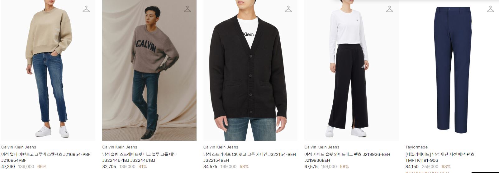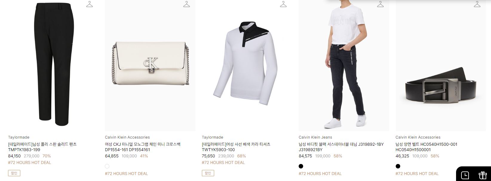 할인 품목 : 티셔츠, 팬츠, 가방 등