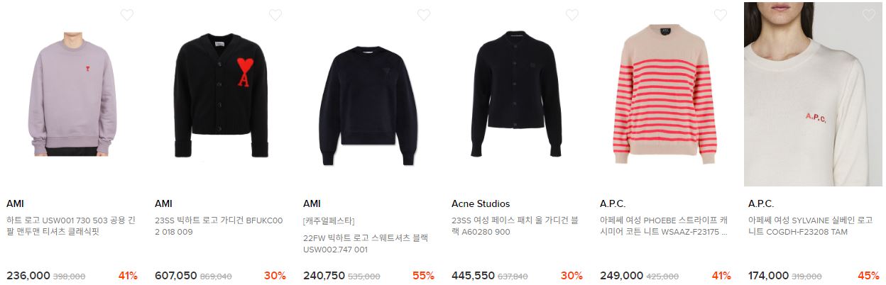 할인 품목 : 의류, 가방, 신발 등