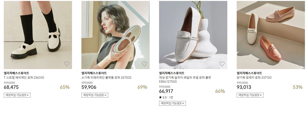 할인 품목 : 운동화, 플랫슈즈, 로퍼 등
