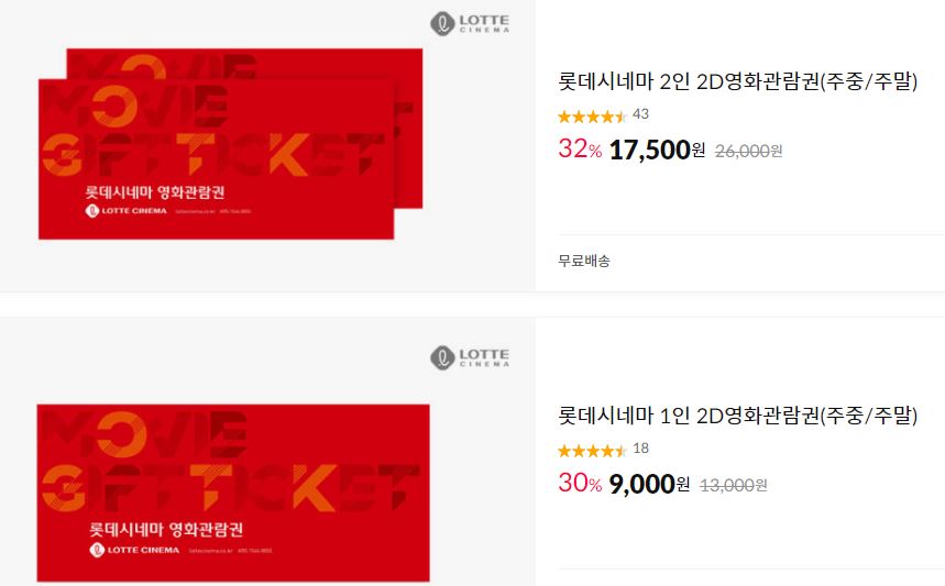 할인 품목 : 영화관람권, 팝콘 등