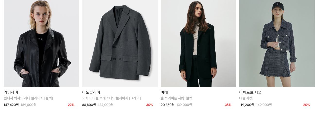할인 품목 : 자켓, 코트 등