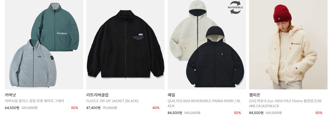 할인 품목 : 자켓, 코트 등