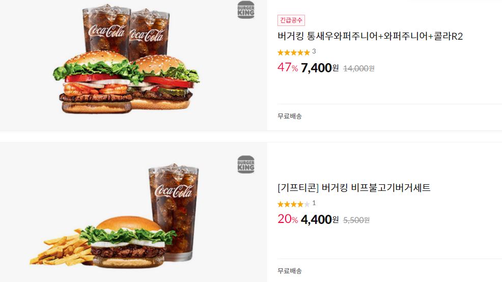 버거킹 다양한 메뉴를 할인 판매하네요.