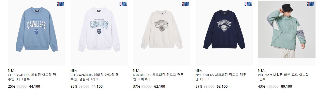 NBA/NFL 다양한 제품을 할인 판매하네요.