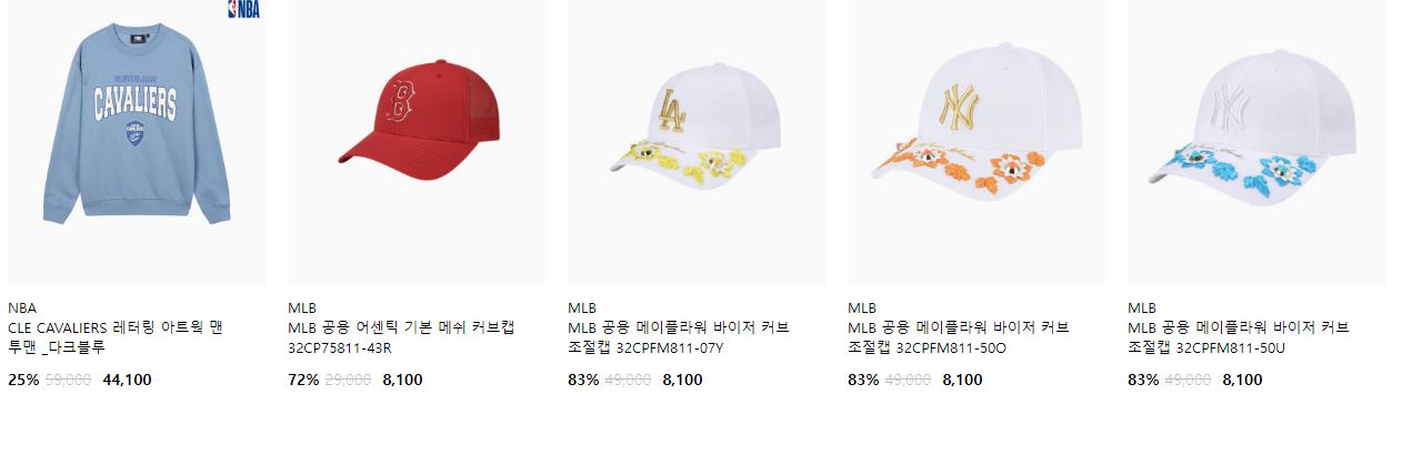 NBA/NFL 다양한 제품을 할인 판매하네요.