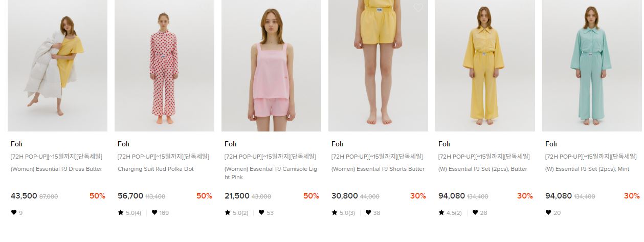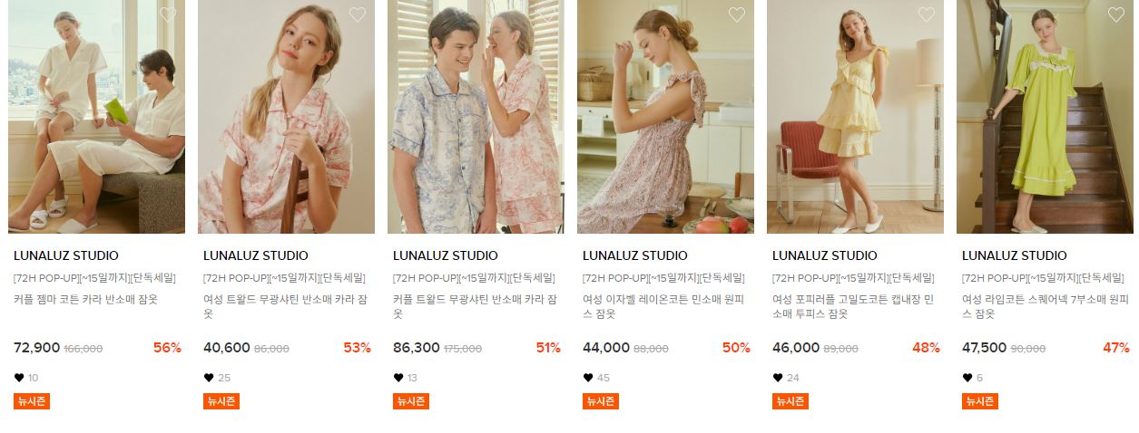 할인 품목 : 잠옷, 원피스 등