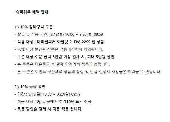타미힐피거 아울렛 슈퍼 위크 최대 70% 세일 정보 [링크]