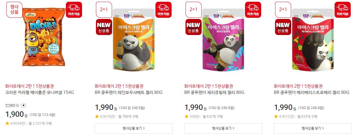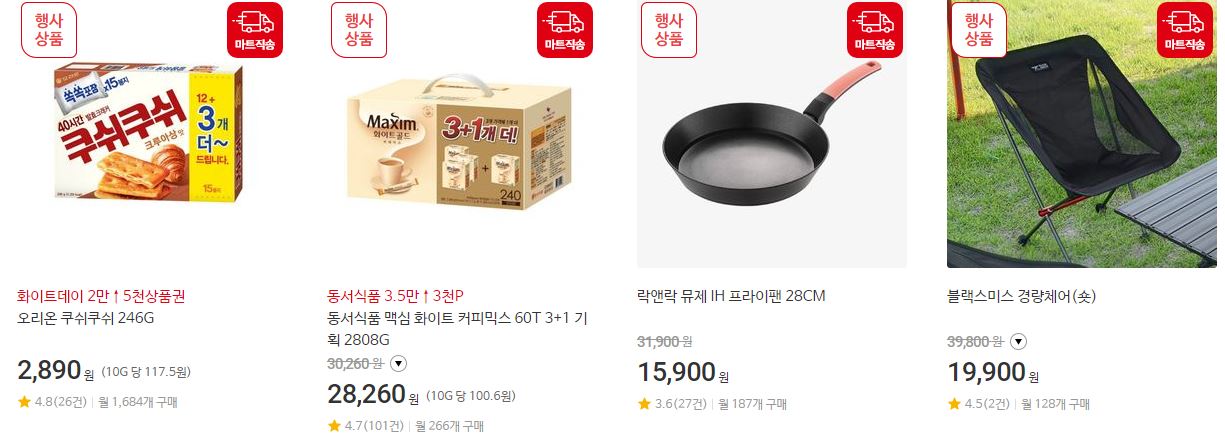 할인 품목 : 과자, 세제, 생활용품 등