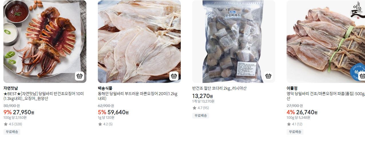 할인 품목 : 고등어, 명태, 오징어