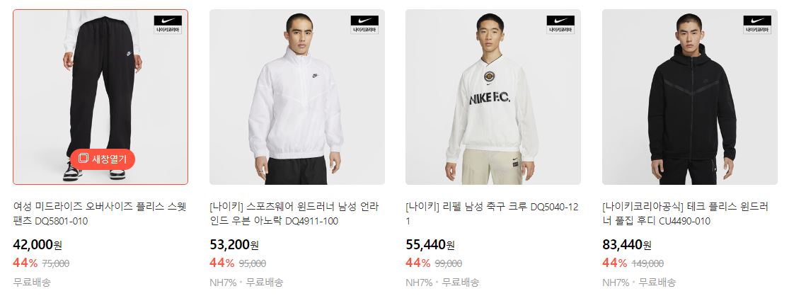 할인 품목 : 팬츠, 티셔츠, 운동화 등