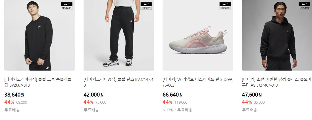 할인 품목 : 팬츠, 티셔츠, 운동화 등